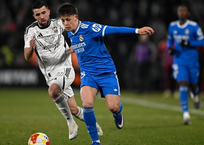 国王杯1/8决赛展开争夺,皇马做客挑战西乙球队阿尔瓦塞特。皇马在联赛取得14胜3平2负的战绩,以4分的劣势屈居第2,排在巴塞罗那身后。在周一皇马踢了一场西班牙超级杯决赛,结果皇马遗憾落败,输给了巴塞罗那,无缘冠军。这直接导致阿隆索被解雇。如今来到国王杯赛场,是新帅阿韦洛亚的首秀。结果,皇马爆出超级大冷门,惨遭淘汰!