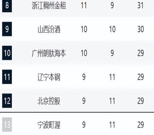 8-10分别是浙江、山西和广州。浙江已经三连胜了,之前出现起伏之后,最近的状态开始巩固起来了。山西则是三连败,他们的排名也在下跌。也没有办法,没有了张宁,他们的实力确实拉胯。广州在徐昕和郭艾伦缺席的情况下,他们这轮溃败给了上海。 11-13分别是辽宁、北控和宁波。辽宁这轮大胜四川,止住颓势。北控最近的趋势越来越好,内线暴走的情况下,全队都被盘活,现在已经两连胜了。宁波最近遭遇两连败,这段时间攻守一塌糊涂。