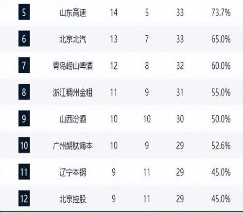 广厦重返第1,广东第3,山东直指前4,辽宁重回前12,两黑马坠落