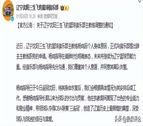 杨鸣直播谈离职:表现挣扎主教练必须担责!已有CBA初步接触!