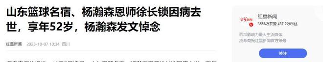 1 中秋本应是灯火团圆、亲人相聚的温馨时刻,篮球界却突传令人悲痛的消息。 2 前CBA山东男篮主教练徐长锁因病离世,年仅52岁,消息一出,无数球迷与业内人士为之动容。 3 这位来自山东莱州的篮球名宿,不仅曾作为球员书写辉煌篇章,更在退役后投身青训,为中国篮球输送了包括NBA新星杨瀚森在内的多位杰出人才。 4 噩耗传来,正在美国备战新赛季的杨瀚森立即在社交平台表达哀思,言语中满是对恩师的不舍与敬重。 5 一个尚处人生黄金阶段的教练,为何骤然告别?他的生命终点背后,又承载着怎样的坚持与隐忍? 本文陈述内容皆有可靠信息来源,赘述在文章结尾 6 中秋夜传来陨落噩耗 7 10月6日晚,节日余温未散,一则讣告如寒流般席卷整个中国篮坛: 8 青岛男篮青训总监徐长锁因肝癌医治无效去世,终年52岁。 9 这一消息来得太过突然,许多圈内人第一反应竟是怀疑其真实性。 10 就在今年年初,人们还曾在赛场边看到他熟悉的身影——彼时他与刘维伟并肩而立,谈笑风生,精神矍铄。 11 谁也无法预料,短短数月之后,这位为中国篮球耕耘三十余年的老兵竟悄然离去。 12 徐长锁出生于1970年,身高1米94,司职前锋,是上世纪90年代山东男篮的核心人物之一。 13 老一辈的山东球迷心中,有五位球员堪称传奇:徐长锁、巩晓彬、纪民尚、鞠维松和杨文海。 14 他们被称作“山东五虎”,共同铸就了齐鲁篮球最辉煌的岁月。 15 场上,徐长锁与巩晓彬配合默契无间,一个主攻内线强打,一个外线策应调度,两人联手撑起球队进攻体系。 16 他们的组合被誉为当时联赛最具观赏性的搭档之一。 17 1997-98赛季成为徐长锁职业生涯的高光年份。 18 那一年,山东队取得常规赛第二名、季后赛第三名的历史最佳战绩,震惊全国。 19 他在攻防两端展现出极强的稳定性与拼搏意志,成为全队不可或缺的灵魂人物。 20 次年,他凭借出色表现入选国家队,虽停留时间不长,但这份荣誉足以证明其实力已获最高层面认可。 21 对于无数山东篮球迷而言,正是从“五虎时代”开始,他们真正将关注投向这支本土队伍。 22 那个年代电视转播有限,可只要山东队出战,家家户户都会围坐在屏幕前守候。 23 徐长锁和他的队友们不只是运动员,更是那个时代的情感寄托,是一段无法复制的青春印记。 24 扎根青训培养栋梁 25 退役后,徐长锁并未离开热爱的球场,而是转身执起教鞭,致力于青年人才培养。 26 1999年刚结束球员生涯,他便进入山东青年队担任助理教练,随后升任主教练。 27 在他的带领下,山东青年队屡创佳绩,曾夺得全国亚军,并实现连续两年问鼎冠军的壮举。 28 此后,他的执教足迹延伸至河南、山西、安徽等地,所到之处皆留下扎实的训练作风与显著的成果提升。 29 2017年,在宫鲁鸣推荐下,他出任安徽文一男篮总教练,带队征战一年,成绩斐然。 30 2019年重返青岛,正式接手青岛国信青年队主教练职务。 31 仅仅两年后,这支队伍便在U17全国联赛中夺冠。 32 这是青岛篮球史上首个全国性青年赛事冠军,意义重大。 33 同年10月,他接过山东高速男篮主帅帅印。 34 尽管仅执教一个赛季,但他严谨的态度、科学的战术安排以及对球员心理的细致引导,赢得广泛赞誉。 35 由于健康状况逐渐恶化,他不得不辞去一线教练岗位,转而从事管理工作。 36 先是在山东俱乐部担任副总经理,主管青训体系建设;2025年调任青岛男篮,出任青训总监。 37 而在他多年耕耘的成果中,最为耀眼的莫过于如今登陆NBA的杨瀚森。 38 2019年,徐长锁前往淄博观摩一场青少年邀请赛,一名14岁的少年立刻引起他的注意。 39 这名少年身材修长,动作流畅,更重要的是球感出众、判断精准,展现出远超同龄人的篮球智慧。 40 徐长锁当即认定:这是一个值得倾注心血的好苗子。 41 然而起初,杨瀚森的父亲顾虑重重,担心孩子年纪太小、远离家乡难以适应。 42 面对犹豫,徐长锁没有放弃,多次登门沟通,耐心介绍青岛的训练资源、成长路径与发展前景。 43 最终于2020年成功将杨瀚森引入青岛青年梯队。 44 事实验证了他的独到眼光。 45 在徐长锁系统化的指导下,杨瀚森的技术能力迅速成熟,身体素质与比赛意识同步提升。 46 他不仅率队夺得2021年U17全国冠军,进入职业队后更以惊人速度崭露头角。 47 2025年NBA选秀大会上,波特兰开拓者用首轮第16顺位选中他,成为中国继周琦之后又一位直接登陆NBA的球员。 48 除了杨瀚森,徐长锁亲手培养的人才名单上星光熠熠。 49 丁彦雨航便是其中代表——两度荣膺CBA常规赛MVP,被誉为“国产詹姆斯”的他,始终视徐长锁为人生导师。 50 他曾多次公开表示:“徐指导就像我的大哥,不仅教会我打球,更教会我做人。” 51 无论是技术打磨还是生活关怀,徐长锁都给予他极大支持。 52 山东男篮近年来崛起的一批主力球员,如陶汉林、贾诚、吴珂、李敬宇、睢冉、段昂君等,几乎全都接受过他的指导。 53 毫不夸张地说,他为中国篮球,特别是山东篮球,搭建起整整一代人才梯队。 54 隐瞒病情坚守岗位 55 据知情人士透露,徐长锁早在半年前已被确诊为肝癌晚期。 56 但当时正值杨瀚森备战NBA选秀的关键时期。 57 为了不让弟子分心,他选择将病情深埋心底,未曾向外界透露半分。 58 选秀直播当日,他还出现在青岛俱乐部现场,与其他工作人员一同观看,为远在美国的杨瀚森默默加油。 59 直到8月,病情急剧恶化,才被迫入院治疗。 60 肝癌发展迅猛,从