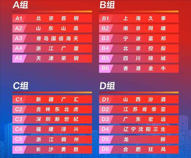 B组的6支球队分别是上海队、四川队、宁波队、北控队、南京同曦队和香港金牛队(NBL);