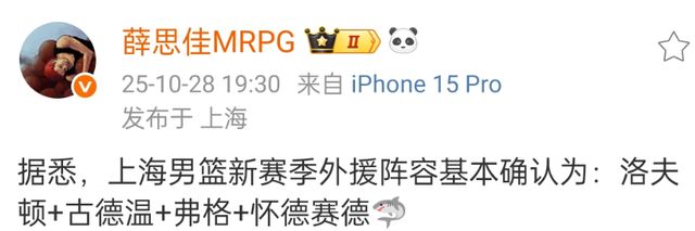 上海男篮休赛期大手笔引进了张镇麟,还补充了崔晓龙,外援方面签下了古德温,续约了洛夫顿。但随后两名外援的挑选就没有了下文,在日本热身赛期间,试训了怀特塞德,不过当时效果不理想,之后又接触了多名有CBA经历的外援。 就在距离CBA新赛季还有不到两个月的时候,上海男篮终于确定了四名外援,弗格的加盟有些意外,据了解卢伟希望弗格的经验给球队提供帮助,而怀特塞德的内线防守还是上海男篮所需要的。