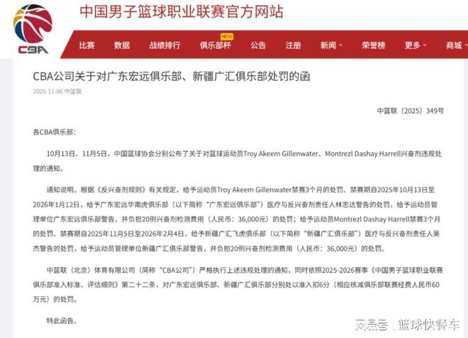 事实上,吉伦沃特和哈雷尔使用兴奋剂违规一事,早在上半年便被爆出来。不过,当时由于种种缘由,篮协方面并没有直接开出罚单。而在上个月,针对广东队外援吉伦沃特,篮协已经提前开出了禁赛三个月的罚单,广东队俱乐部也被警告以及需要垫付兴奋剂检测3.6万元。而哈雷尔则由于其他缘由,篮协当时并没有针对他和新疆队开出处罚。对于这样的处罚力度,当时还有不少球迷不大满意。 不过,很显然,他们还是低估了篮协对于该类事件的重视以及处罚力度。近日,中国篮协终于针对吉伦沃特和哈雷尔开出终极罚单。根据篮协开出的罚单显示,吉伦沃特和哈雷尔都会被禁赛三个月。这其中吉伦沃特从2025年10月13日开始执行,2026年1月12日结束。而哈雷尔则从2025年11月5日,到2026年2月4日结束。不过,由于CBA新赛季开赛延迟,他俩其实还是能够赶上新赛季大部分比赛的。 相比于吉伦沃特和哈雷尔只禁赛三个月,篮协对于两家俱乐部,则采取零容忍态度。尽管在此前,广东队已经被处罚了。不过,这一次,篮协还是针对广东队追加处罚。上一次,篮协只警告了广东队,并且让他们垫付了3.6万的兴奋剂检测费用(罚款)。而这一次,他们不仅重罚广东队60万元,而且,还处以准入扣6分。换句话说,如果广东队在接下来还出现类似的情况,一旦分数被扣完了,广东队可能连CBA都打不了。 新疆队的情况与广东队以后,同样被处以准入扣6分,随后又被追加处罚60万元罚款。对于吉伦沃特和哈雷尔这种情况,广东队和新疆队在事情发生后,他们的表现还是非常主动积极的,各方面都配合体育总局和篮协。而对于吉伦沃特和哈雷尔这种问题,两家俱乐部也在第一时间发文道歉了,并且,保证在接下来会严加管理,不允许再出现类似的情况。 从目前的情况来看,吉伦沃特和哈雷尔虽然只被禁赛三个月,按照时间来推算,他们确实还可以赶上大部分比赛。不过,按照CBA目前的现状,在这件事情发生后,大概率不会有球队愿意签下他们了。而且,吉伦沃特的年龄也上去了,个人状态也大不如前。在这件事情发生后,就更加没有球队敢冒天下之大不韪,顶风作案。不出意外的话,在遭到中国篮协禁赛后,吉伦沃特和哈雷尔,恐怕再也无法重返CBA了。