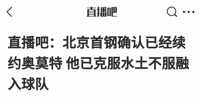 前一段时间里,媒体人透露了北京男篮有意对锋线外援奥莫特执行优先续约权的消息。就记者向北京男篮管理层了解到,球队已经和奥莫特完成了续约。通过奥莫特的社交媒体能够看出,他最近一段时间他训练得非常刻苦,正在调整状态。在本周四,奥莫特将会启程飞往中国和北京男篮会合。