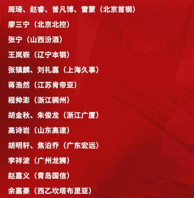中国男篮本期集训总共19人入选,具体如下: 后卫赵睿、廖三宁、王岚嵚、程帅澎、高诗岩、胡明轩;前锋曾凡博、雷蒙、张宁、张镇麟、刘礼嘉、朱俊龙、赵嘉义;内线周琦、蒋浩然、胡金秋、焦泊乔、李祥波、余嘉豪。