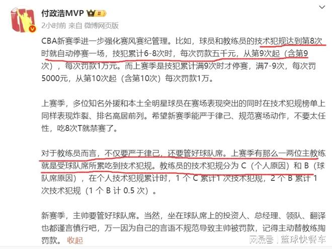 众所周知,篮协和CBA方面,最近几年针对CBA球员和教练员,他们采取的是零容忍的态度,无论是炮轰裁判,还是网络上指责CBA联赛,或者是赛场上一系列不文明行为,篮协方面基本都是采取重罚。可即便篮协和CBA抓得非常严厉,可每个赛季下来,还是有不少CBA球员和教练员顶风作案,这也让CBA联盟非常尴尬。像上赛季季后赛,广东队与山西队在季后赛几乎每场比赛都被处罚,广厦与北京总决赛G5战赛后,也一度引发冲突。 很显然,对于CBA上赛季不少球队的做法,篮协和CBA方面还是不大满意。这不,在2025-26新赛季,篮协和CBA方面就重点强调了球员和教练员的赛场作风。为了让球员和教练员更为“谨慎”,篮协方面针对技术犯规处罚和罚款,又增加了力度。新赛季,无论是球员还是教练员,一旦技术犯规达到6次以上,将会被直接罚款,而达到8次者,将会被自动禁赛一场。 相比于上赛季,新赛季在针对球员和教练员技术犯规一事上,篮协还是抓得非常严厉的。上赛季,CBA球员和教练员要累计达到7次以上,才会被罚款,技术犯规达到10次以上,才会被重罚。而且,在禁赛方面,上赛季要达到9次以上,才会被禁赛。很显然,篮协和CBA的做法已经非常明显了,他们不希望新赛季会再次出现像上赛季那样的情况,球员和教练员都必须恪守新规。 像上赛季的洛夫顿、高诗岩、古德温等人,他们便是技术犯规大户。而在教练员方面,广东队主教练杜锋,和辽宁队主教练杨鸣,他们也是技术犯规大户,过去几个赛季,他们因为不满裁判吹罚,而领到技术犯规的也是常有的事情。另外,由于替补席总经理、助教、领队,他们一旦有情绪的话,裁判如果给替补席技术犯规的话,那么,这一次技术犯规也会累计到主教练头上,这对于主教练而言,确实是非常不利。 要知道,以杜锋和杨鸣两人的性格,他们在过去几个赛季,也没少炮轰裁判。不过,由于新赛季对技术犯规抓得更严,这对于杜锋和杨鸣而言,确实是非常不利的。一旦他们被对手激怒,那么,便很容易吃到技术犯规。对于广东队和辽宁队来讲,新赛季他们还真担忧杜锋和杨鸣,一时冲动,给球队带来不必要的麻烦。当然,从篮协和CBA的出发点来看,他们这样做,也是有他们的道理的。