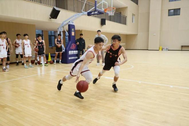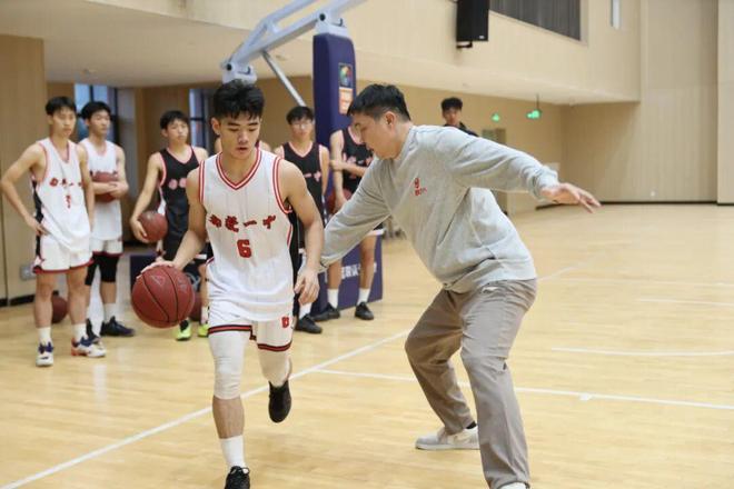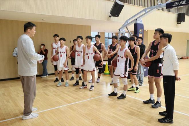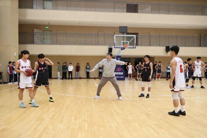 当天,张劲松一行首先参观了学校宣传栏,并听取校史介绍,随后进入昌财体育馆观看校篮球队训练。球场内,身穿两色球衣的校队队员们正进行着绕障碍运球、上篮的训练,密集的击球声在场内回响。 张劲松向队员们仔细讲解篮球技术,特别是防守方面的技术要领,并下场安排队员们与其配合,示范单人和多人防守的动作细节。在篮球名宿的指导下,队员们分成多组,展开攻防演练,如同实战。每当看到球员们顺利完成动作,他都会及时给予表扬。 “大家要通过协作帮助你的同伴得分,变得更优秀。”他勉励校队队员在平时加强训练,学会利用新方式、新工具进行训练。