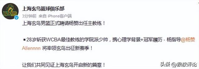 北京时间11月30日,根据上海玄鸟篮球俱乐部公示,28岁斩获WCBA最佳教练的学院派少帅,携心理学背景+冠军履历 - 杨指导将率领玄鸟出征新赛季。 2020年7月,杨赞加盟内蒙古女篮。2023年10月份,杨赞正式成为内蒙古女篮的主教练,并成为联赛“少帅”的代表,接手球队时只有28岁。 2023-2024赛季,内蒙古女篮常规赛排名第一,杨赞本人也获得了常规赛最佳教练员、全明星北区明星队主教练等荣誉,不过内蒙古队在总决赛中2-3惜败四川,屈居联赛亚军。 2024-2025赛季,内蒙古女篮综合实力有所下滑,最终止步季后赛半决赛。 今年夏天,由于内蒙古女篮面临重组和解散的局势,杨赞成为首个公开离队的核心拼图。 由于中国篮协释放了可能扩军的信号,这让不少有意冲击CBA球队纷纷加入到NBL新赛季的版图。 2025 年 9 月,上海玄天鸟篮球俱乐部正式成立!作为上海唯一 NBL 代表、本土第二支男子五人制职业篮球俱乐部,我们获准跻身全国男子篮球联赛大家庭,将在 12 月燃启新赛季征程。 其中,签约前上海交大赖益烨成为外界关注的焦点,这名社交媒体账号粉丝超过500万的网红球员毫无疑问是自带流量体质,双方合作能否达到双赢的局势,同样是外界关注的焦点。 |