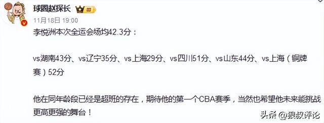 全运会场均42分!吴前:外界对李悦洲关注太高,这不是好事