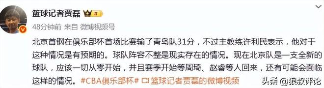 计划内徐利民:北京男篮输青岛31分,这种情况是有预期的
