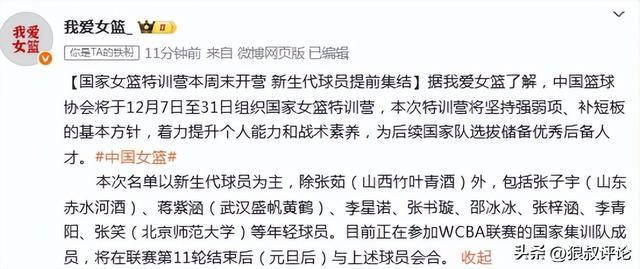 张子宇领衔!中国篮协将于12月7日至31日组织国家女篮特训营