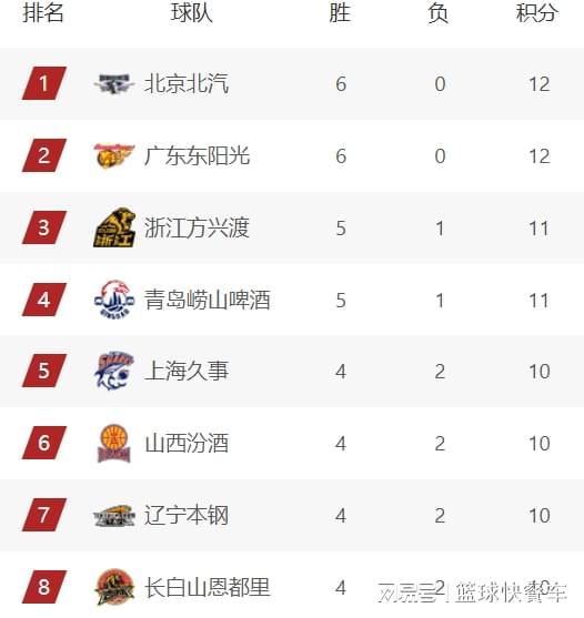 CBA积分榜最新排名出炉!北京广东稳居前2:辽宁队暴跌至第7
