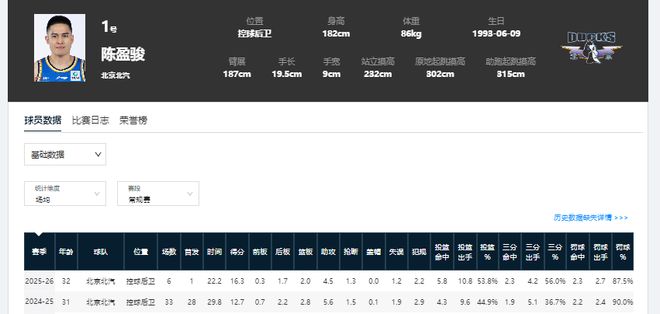 北京男篮第六人:陈盈骏 赵睿加盟北京男篮后,受战术影响,陈盈骏的出场顺序由首发变成了替补,也就是成为了球队替补阵容的核心领袖。24-25赛季常规赛,陈盈骏出场33次,仅5次替补身份。本赛季6场过后,他就已替补出场5次。