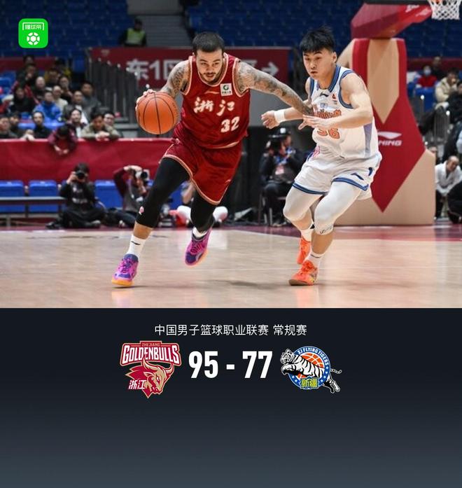 第一节浙江布兰登-兰道夫拿下8分,新疆扎卡里-纳托尔拿下6分,首节战罢浙江26-18领先新疆 第二节浙江陆文博拿下6分,新疆阿不都沙拉木-阿不都热西提拿下9分,半场结束浙江53-45领先新疆 第三节浙江布兰登-兰道夫拿下6分,新疆阿不都沙拉木-阿不都热西提拿下6分,第三节结束浙江75-64领先新疆 第四节浙江达米安-琼斯拿下6分,新疆齐麟拿下5分,最终浙江95-77战胜新疆