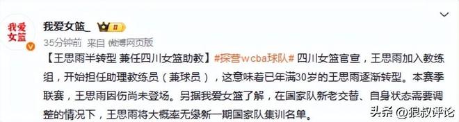 仍未复出!媒体人:王思雨兼任四川女篮助教大概率无缘国家队集训