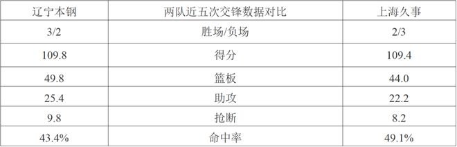 上赛季两队交手2次,辽宁本钢2胜0负。