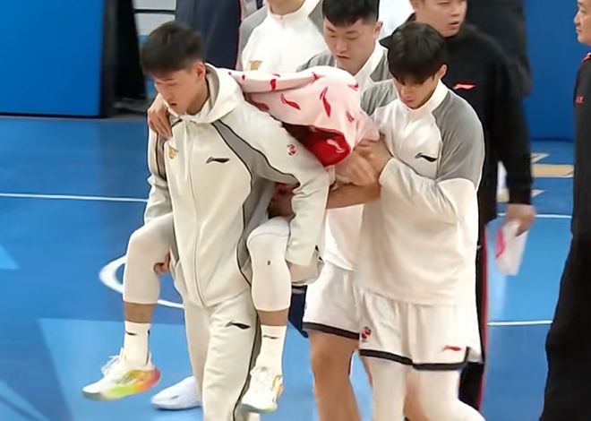 广东遭噩梦!周琦撞到徐杰腿部,被队友背下场,伤停恐致进攻崩盘