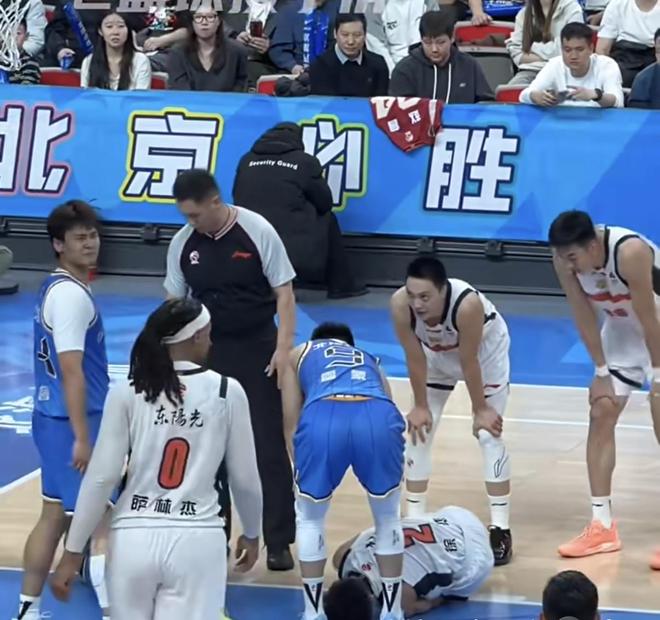 徐杰的这次受伤看着实在太吓人了。当时周琦被萨姆纳绊倒,整个人失去平衡,直愣愣地往徐杰身上撞。比赛直播的时候看不太清楚,只看到徐杰是被周琦撞到了膝盖和腿部,大家都认为徐杰是膝盖受伤了。但慢镜回放能观察到,其实徐杰倒下后一直在捂住自己的脚踝,后面被队友背着离场时,膝盖和腿部没有明显反应,倒是脚踝下意识地回缩了一下,证明确实是脚踝扭了一下。这下还要感叹一下,赵睿和胡明轩真的是好兄弟,看到徐杰受伤后第一时间凑上去关心,赵睿还直接喊来了广东队医,三人的关系确实很好。