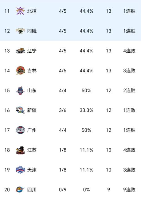 CBA一夜两大惨案!积分榜最新排名:广东掉第3辽宁第10新疆第16