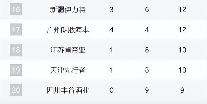 最后五名分别是新疆、广州、江苏、天津和四川。广州这轮拿下山西是惊喜,他们还少赛一场,也是4胜。新疆目前的麻烦还非常大,外援和主帅的实力都非常糟糕。江苏、天津和四川巩固最后三名,基本上没什么希望了。 |