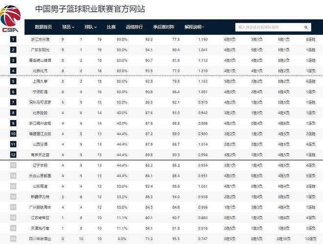 CBA排名更新!广厦双杀北京,广东力克北控,上海险胜浙江!
