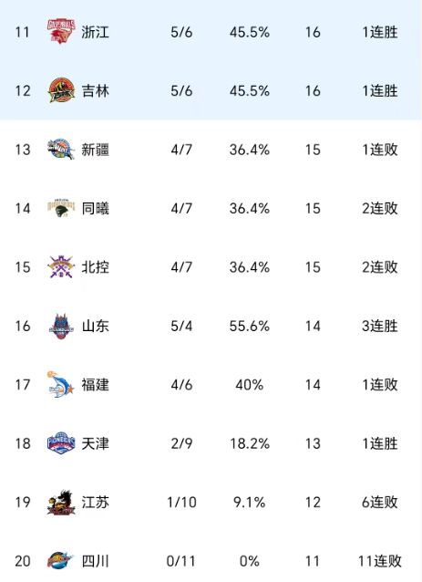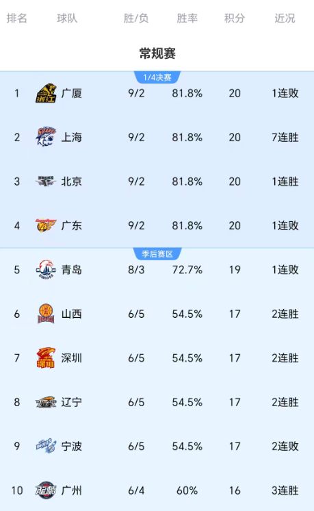 随着北京险胜,辽宁大胜,CBA最新积分榜:前四皆9胜2负排名有变