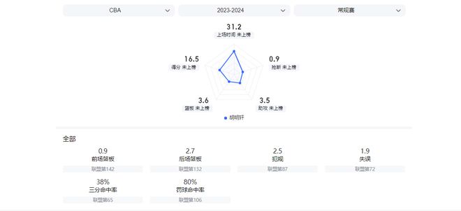 拿顶薪的首个赛季,胡明轩投篮命中率下滑5个百分点左右。本赛季截至第11轮,他场均只有8.8分,投篮命中率低至31.6%,三分命中率连三成都不到,仅为23.6%。 胡明轩的打法跟江苏男篮菜鸟赛季的选秀球员庞峥麟很像。两人都是靠速度,冲击力去打球的后卫。胡明轩静态天赋还比庞峥麟出色,但同为球队持球大核,却表现远不如人家。其问题可能是在性格和球商方面。