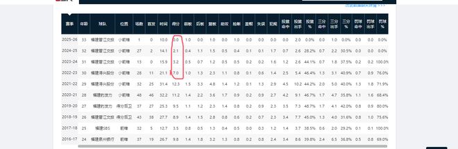 21-22赛季,黄毅超凭借场均12.3分4.8篮板,以及高达40%的稳定三分命中率征服福建男篮。