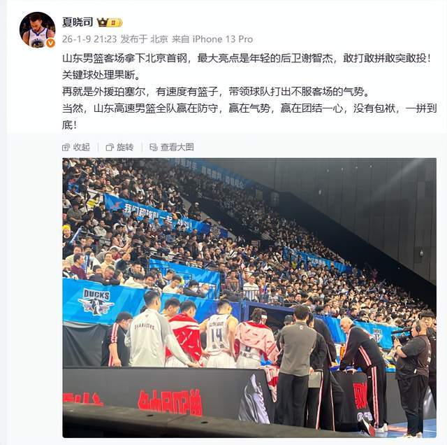 既然赢了,开心就完了。山东媒体人夏晓司老师就很开心,他连发4条动态,盛赞山东男篮。