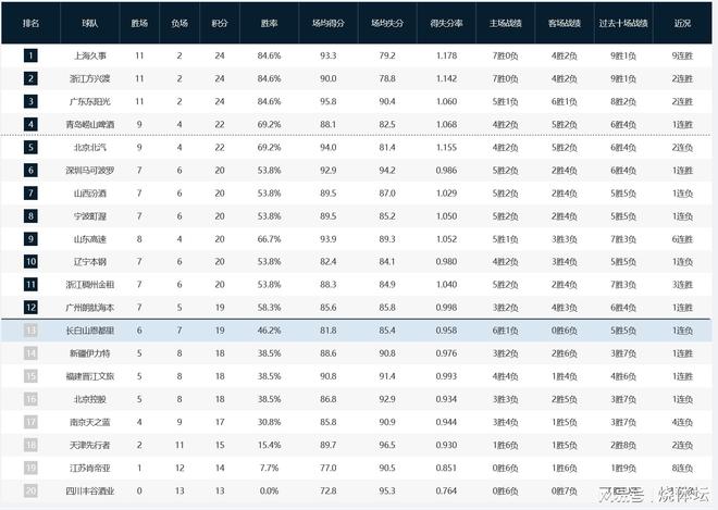 至此,青岛男篮终结2连败,总成绩改写为9胜4负,排名回到积分榜前五。吉林男篮的连胜状态被终结,迎来本赛季第7场失利,胜率再度低于50%,而排名被挤出季后赛区域。