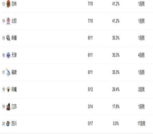 浙江、辽宁、宁波和广州排在9-12。浙江已经两连败了,相比于之前的强势崛起,最近有点放缓了。辽宁也是两连败,他们的核心问题还是出在得分点太少了,即便赵继伟复出也无法盘活全队。宁波则遭遇三连败,国内球员得分能力太差了。广州则在保持紧咬,这轮还大胜了北控。