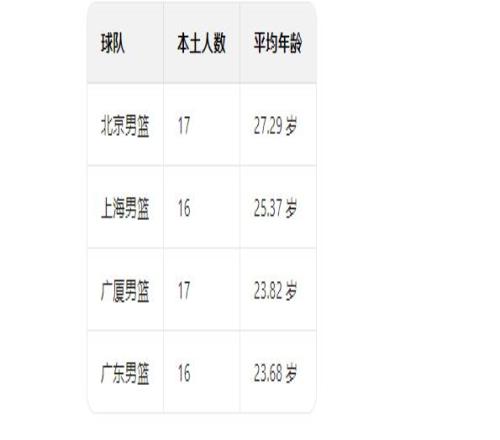 本赛季CBA四大豪强球队平均年龄对比