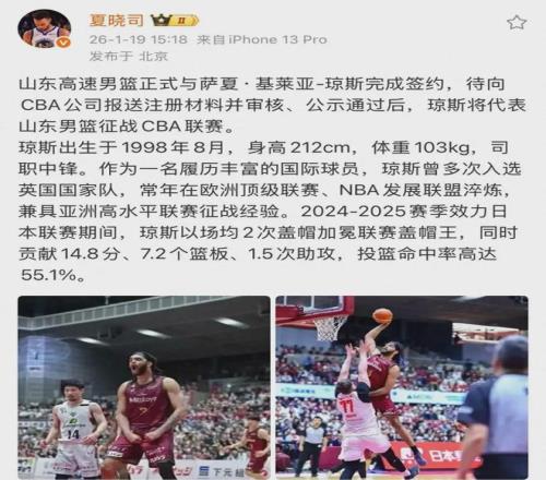 山东男篮官宣新外援!身高2米12,NBA落选秀,盖帽王