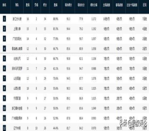CBA最新排名:上海4连胜稳居第2,山东11战10胜南京战绩暴跌