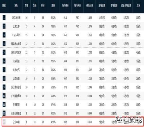 辽宁危机多严重:末节4分近7战6败跌出前12单场59分队史第二差