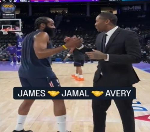 快船官方晒出哈登赛前与前快船球员克劳福德和布拉德利互动的视频,配文:“快船队的过去与现在