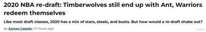 勇士队看走眼!美媒重排20年NBA乐透秀:状元郎不变+哈利飙升榜眼