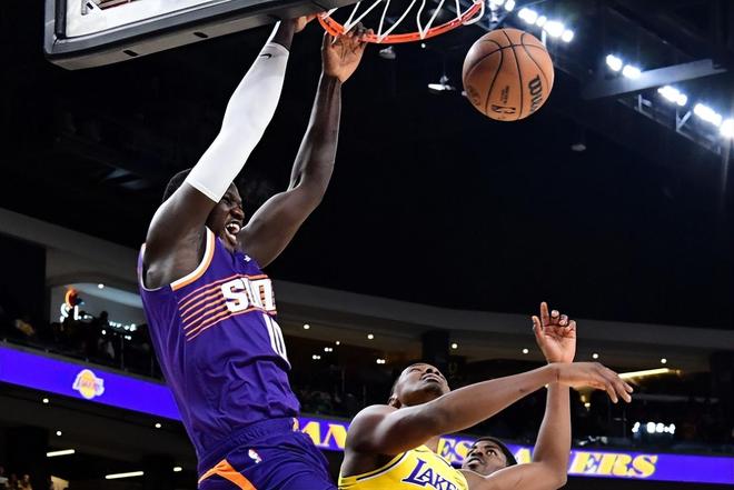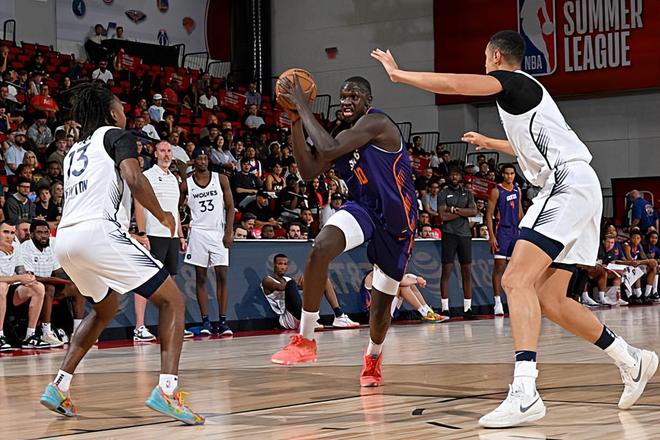 在此前的一场NBA季前赛中,菲尼克斯太阳以103比81轻取了主场作战的洛杉矶湖人,取得了季前赛的开门红,而湖人则是在首场季前赛中就遭遇了这样一场惨败。 本场比赛中,太阳的替补内线新秀卡曼-马鲁阿奇(Khaman Maluach)的表现还是不错的。马鲁阿奇全场出场9分51秒,投篮2中1,罚球4中2,得到了4分6篮板的数据,还有1次失误和1次犯规,正负值为+2。马鲁阿奇在进攻端的能力确实是比较一般的,他确实是缺乏基本的得分能力,他也没有什么其他方面的突出才能。不过马鲁阿奇在防守端的表现还是相当不错的,他的篮板保护能力相当突出,他也能够有效利用自己在身体天赋方面的优势给对手制造巨大的麻烦。马鲁阿奇的整体作用还是比较突出的,他也是将自己的一些特点施展了出来。在出场时间有限的情况下能够做到这一点,也并不是一件容易的事情。 马鲁阿奇出生于2006年9月,现年19岁,是今年NBA选秀大会中太阳在首轮第10顺位选中的来自杜克大学的内线球员。根据选秀大会前联合试训体测环节的数据,马鲁阿奇的裸足身高为215.3cm,臂展为230.5cm,站立摸高为289.6cm,体重为114.7kg。在本赛季的NCAA赛场,马鲁阿奇总共代表所在的杜克大学出场39次,场均出场时间达到了21.2分钟,场均数据为8.6分6.6篮板(2.7前场篮板)0.5助攻0.2抢断1.3盖帽,还有0.8次失误和2.1次犯规,投篮命中率71.2%(3.5/4.9),三分命中率25%(0.1/0.4),罚球命中率76.6%(1.5/2)。凭借着不俗的表现,他也是入围了ACC联盟最佳新秀阵容。 在此前的NBA夏季联赛中,马鲁阿奇总共出场3次,场均出场时间达到了23.3分钟,场均数据为10分5.7篮板0.3助攻0.7抢断1.3盖帽,还有2.3次失误和4次犯规,投篮命中率35.7%,三分命中率23.1%,罚球命中率43.8%。马鲁阿奇在夏季联赛期间的表现算是马马虎虎,他在进攻端的表现其实是不太理想的,不过他在防守端的表现也是相当不错的。如今到了季前赛,马鲁阿奇看起来在成熟度方面确实是有些欠缺,也是能够展现出一些自己的特点的,他的天赋和潜力也是肉眼可见的。作为一名高顺位乐透秀,不知道马鲁阿奇在新秀赛季到底能够得到多少出场时间了,他能够向轮换阵容的位置发起冲击吗? |