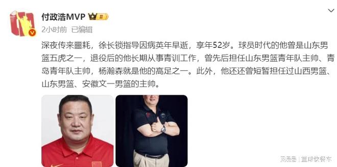 作为中国男篮名宿,熟悉CBA和中国男篮的球迷,应该都知道他的名字。早年,他是山东男篮的奠基人之一,与巩晓彬、鞠维松等人一度齐名。在1997-98赛季,徐长锁带领山东队拿到CBA常规赛亚军,而在季后赛阶段,山东队最终也拿到了第三名的好成绩。这一战绩,直到2012-13赛季,山东队在丁彦雨航(徐长锁得意门生)带领下,杀进CBA总决赛,这才被打破。而在1999年,他还曾短暂入选过国家队。 不过,对于徐长锁而言,他的人生最为高光时刻,或许还不在于职业生涯,而是在他的退役之后生涯。在从CBA退役以后,徐长锁没有离开篮球,而是选择在篮球基层深耕。他不仅执教过山西队,山东队等CBA球队,而且,大部分时间还是在青年队执教,狠抓青少年基本功,像杨瀚森、丁彦雨航、陶汉林、贾诚等国手,都是他一手栽培起来的。可以说,他对于中国男篮的贡献,其实是非常大的。 尤其是杨瀚森,徐长锁算是杨瀚森的启蒙恩师,和职业生涯的引路人,甚至可以毫不夸张的说,是他改变了杨瀚森的人生走势。在杨瀚森14岁那一年,徐长锁只看了杨瀚森一场比赛,便一眼相中他,并且在随后一年里,徐长锁与杨瀚森的父母软磨硬泡,这才让杨瀚森加盟青岛,也为他日后的飞黄腾达奠定了坚实的基础。而在几个月前,杨瀚森在NBA选秀大会上被开拓者选中,作为昔日的恩师,徐长锁终于长叹一口气,坦言兑现了当年的诺言。 不过,颇为遗憾的是,就在中秋这个月圆之夜,徐长锁却永远的离开了。根据多名知名媒体人透露,徐长锁已经确定永远离开了。作为杨瀚森职业生涯的引路人。在杨瀚森加盟NBA以后,徐长锁无疑是最为开心的一个,他一手打造了男篮未来接班人。可遗憾的是,在杨瀚森登陆NBA以后,徐长锁却未能亲眼看到他征战NBA,甚至连他的NBA首秀,都看不到了。 事实上,除了杨瀚森之外,丁彦雨航、陶汉林、贾诚这些国手,也是徐长锁一手带出来的。作为青年队教练,他在基层一直默默奉献着,为山东男篮和中国男篮培养一代又一代 的人才。只可惜,在杨瀚森这些青年才俊逐渐打出成绩的时候,他却英年早逝。他的离开,对于中国男篮而言,确实是一大损失,一个沉重的打击。也给热爱篮球的人提了一个醒,喜欢篮球可以,但也要倍加珍爱自己的身体。