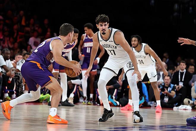 在此前的一场NBA中国赛比赛中,菲尼克斯太阳经过加时苦战后以132比127险胜了布鲁克林篮网。本场比赛后,太阳拿到了季前赛的两连胜,目前在季前赛中的战绩为2胜0负;而篮网则是在季前赛中遭遇了首场失利,目前战绩为1胜1负。 本场比赛中,篮网的替补后场新秀本-沙拉夫(Ben Saraf)的表现其实是非常糟糕的。沙拉夫全场出场18分57秒,投篮5中2,三分线外2中0,罚球6中5,得到了9分1篮板1抢断的数据,还有2次失误和2次犯规,正负值则是低到了全场最低的-17。沙拉夫在进攻端缺乏稳定的得分能力,他在外线投篮方面的表现也是不太理想的。不仅得分能力不佳,而且作为一名后场球员,他也没有展现出任何的组织能力和串联能力,他的控运球能力也是非常一般的水平。除此之外,沙拉夫在防守端的表现也是非常糟糕的,他也没有展现出足够出色的个人防守能力。全场最低的正负值也能够说明他在场上时球队的局面有多糟糕。考虑到沙拉夫的出场时间也不算太少了,这样的表现确实是有些太过离谱了一些。 沙拉夫出生于2006年4月,现年19岁,是今年NBA选秀大会中篮网在首轮第26顺位选中的来自以色列的后场球员。根据选秀大会前联合试训体测环节的数据,沙拉夫的裸足身高195.6cm,臂展201.9cm,站立摸高259.1cm,体重91.6kg。在上赛季的欧洲赛场,沙拉夫在各项赛事中总共代表所在的德甲联赛球队乌尔姆出场59次,场均出场时间达到了23.6分钟,场均数据为12.2分2.8篮板4.1助攻1.1抢断0.3盖帽,还有2.7次失误和2.2次犯规,投篮命中率44.7%,三分命中率29.2%,罚球命中率75.3%。在此前的NBA夏季联赛中,沙拉夫总共出场3次,场均出场时间达到了22.9分钟,场均数据为7分2篮板3.7助攻1抢断0.7盖帽,还有2.7次失误和2次犯规,投篮命中率30.4%,三分命中率0%,罚球命中率53.8%。 沙拉夫在上赛季的欧洲赛场的表现其实还是不错的,他也是展现出了一定的得分能力和投射能力,这应该也是篮网用首轮签选中他的重要因素。然而在之前的NBA夏季联赛中,他的表现就是灾难级别的。如今到了季前赛首场比赛,他的表现也是没有任何实质性的提升,他的能力看起来依然是严重不足的。最令人感到担心的是,篮网在今年的NBA选秀大会中还选择了多名后场新秀。以沙拉夫这样的表现,他想得到稳定的出场时间根本是一件不现实的事情。 |