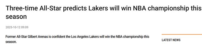 够大胆!阿里纳斯预测湖人新赛季夺冠,若开局5连胜就去纹身