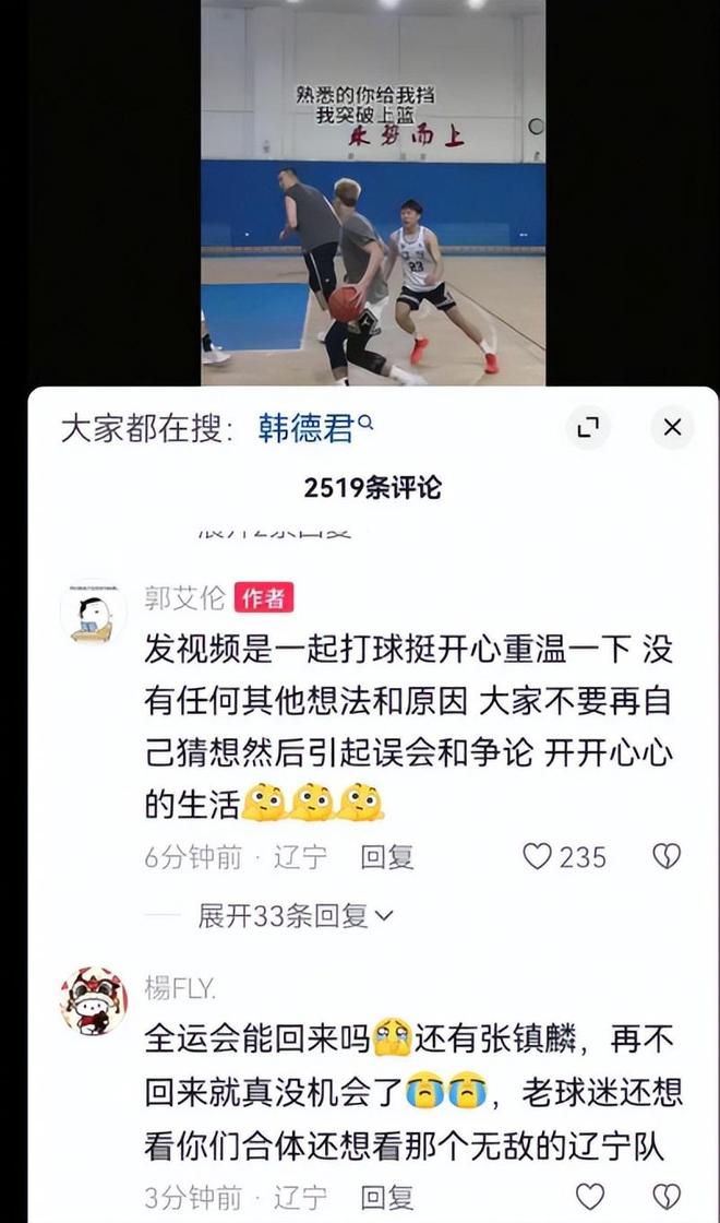 和韩德君回辽宁体育馆打球竟遭辽迷抵制郭艾伦:我没其他想法