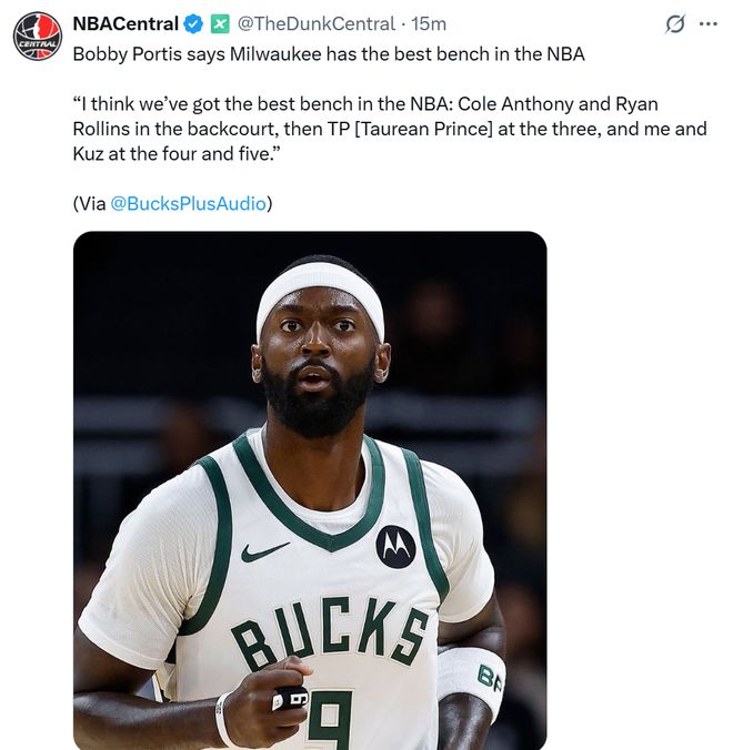 你认同吗波蒂斯:雄鹿拥有全联盟最强的板凳席
