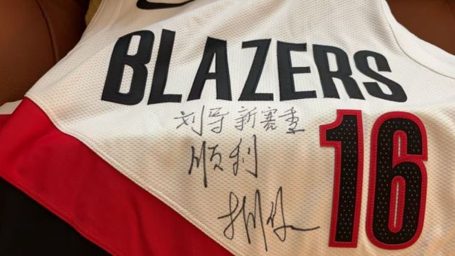 刘维伟也是晒出了杨瀚森给他签名的开拓者16号球衣,上面写道:“刘导,新赛季顺利,杨瀚森。” |