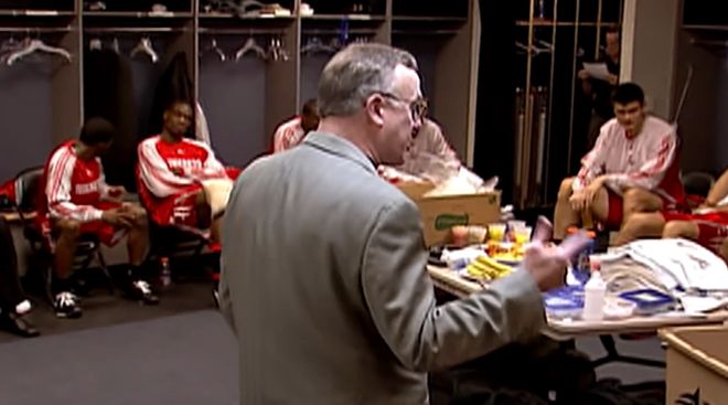 08年应力性骨折,火箭队缺兵少将。 连败期间,姚明自费请全队吃中餐,但条件是:餐后要加练三小时; 弗朗西斯说:“他让我明白,领袖不是嗓门最大,而是汗水最多。”