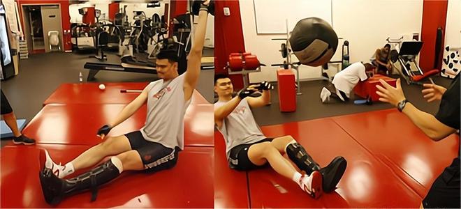 术后三周,姚明便重返健身房,用特制护具完成坐姿投篮; 为找回手感,他单手完成2.8万次投篮训练 这些付出让火箭训练师琼斯泪目:“他本可躺着赚钱,却选择跪着复出。”