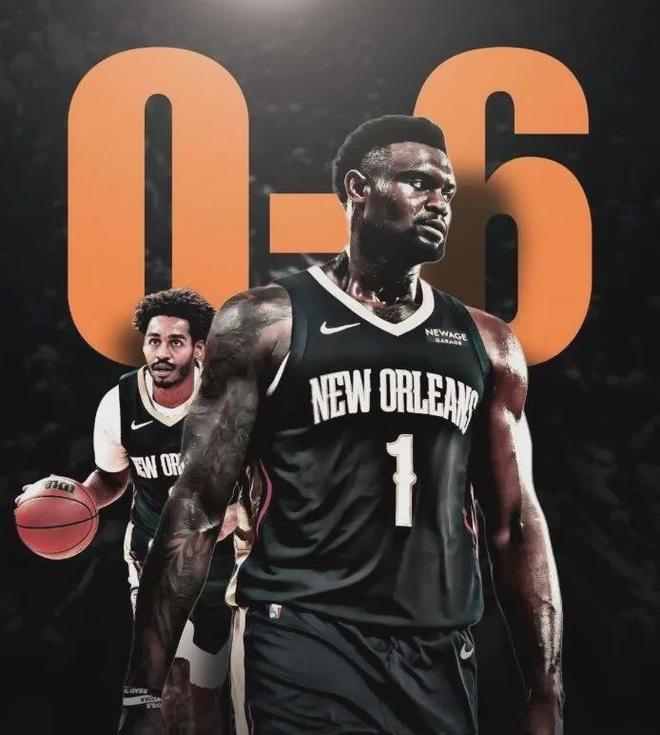 本赛季至今,鹈鹕0胜6负,是西部唯一一支全败队伍,同时是联盟唯二全败的队伍,东部的篮网同样0胜6负。