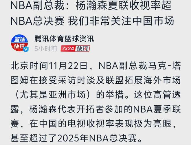 NBA总部显然注意到了这个现象。塔图姆副总裁在上海的商业论坛上特别强调:"亚洲是我们非常非常专注的市场。"这句话背后,是开拓者队中国区社交媒体互动量反超湖人、勇士的惊人事实。某体育营销公司CEO分析:"杨瀚森的商业价值在于他完美契合了Z世代球迷的审美——技术流打法、谦逊性格加上社交媒体亲和力,这是20年前姚明时代没有的优势。"