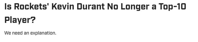 火箭记者Richardson此前表示:“运动员也是人。有时候,他们会遇到一些突发情况,这些情况必须优先于他们的运动。如果杜兰特无故缺席数周,我能理解大家向教练施压。但我们也要负责任地尊重他人的隐私。” 除了杜兰特可能当爸爸引起热议,近期美媒还在讨论另一个话题,现在的杜兰特,还是不是NBA前10的球星。 美媒The Ringer近期公布的百大球员榜单,让这个问题引发了热议。在这份榜单中,杜兰特仅位列第11名。 难道他真的不再是联盟前十级别的球员了?